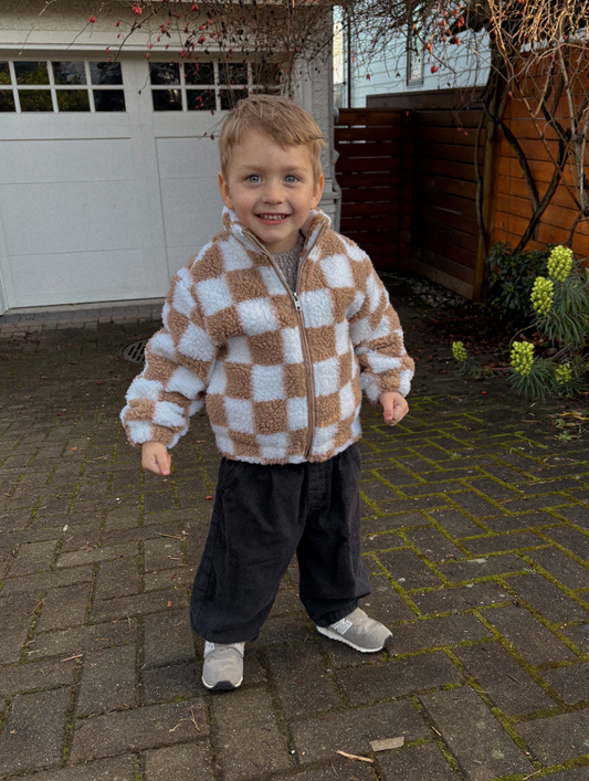 Checkerboard Sherpa Jacket - Fawn/Cream