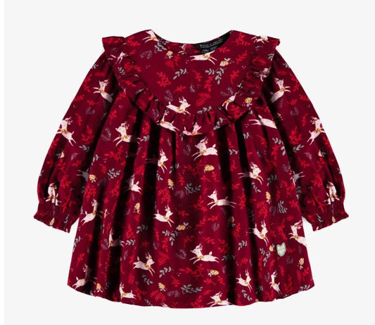 Baby Red Dress with Ruffles and Reindeer