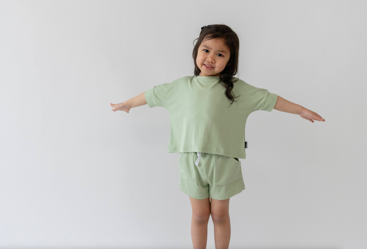 Ribbed Bamboo Baggy Top & Shorts Set - Misty Sage