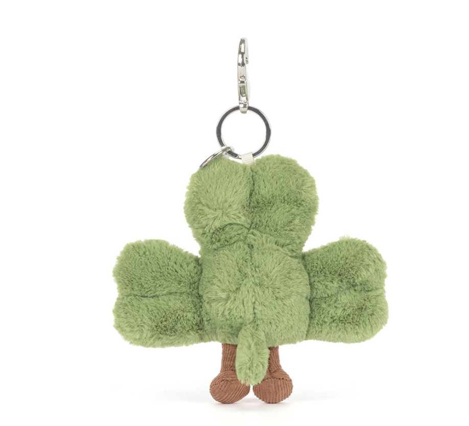 Carry good vibes on the go with this delightful Amuseables Shamrock Bag Charm! Featuring plush emerald leaves, charming cordy boots, and a reliable silver clasp, it attaches effortlessly to any bag or keychain. Inspired by the eternally optimistic Siofra Shamrock, this pint-sized companion radiates positivity and serenity wherever your adventures take you. A perfect pocket-sized reminder that a little luck and cheerfulness can brighten any day – all while adding a dash of Jellycat magic to your everyday style.
