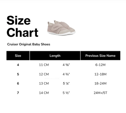 Help your baby walk with confidence! The Cruiser™ Original Baby shoe is based on scientific research and designed to support early walking. With sturdy ankle support and a flexible sole, this shoe will help your little one stand up and improve their balance.