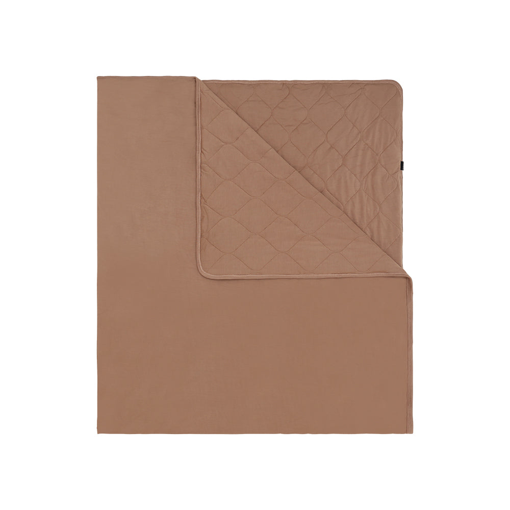 Our soft bamboo material is bigger and better than ever! Our Family Blanket will feel like home with its same cozy bamboo rayon material found in our child blankets and sleepsacks. It is quilted on one side with the same colour on both sides and has the perfect amount of thickness to keep your whole family warm. It’s the best blanket for the whole family fitting up to a Queen sized bed.