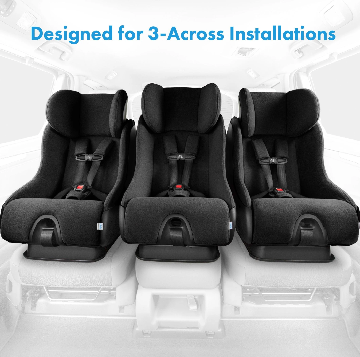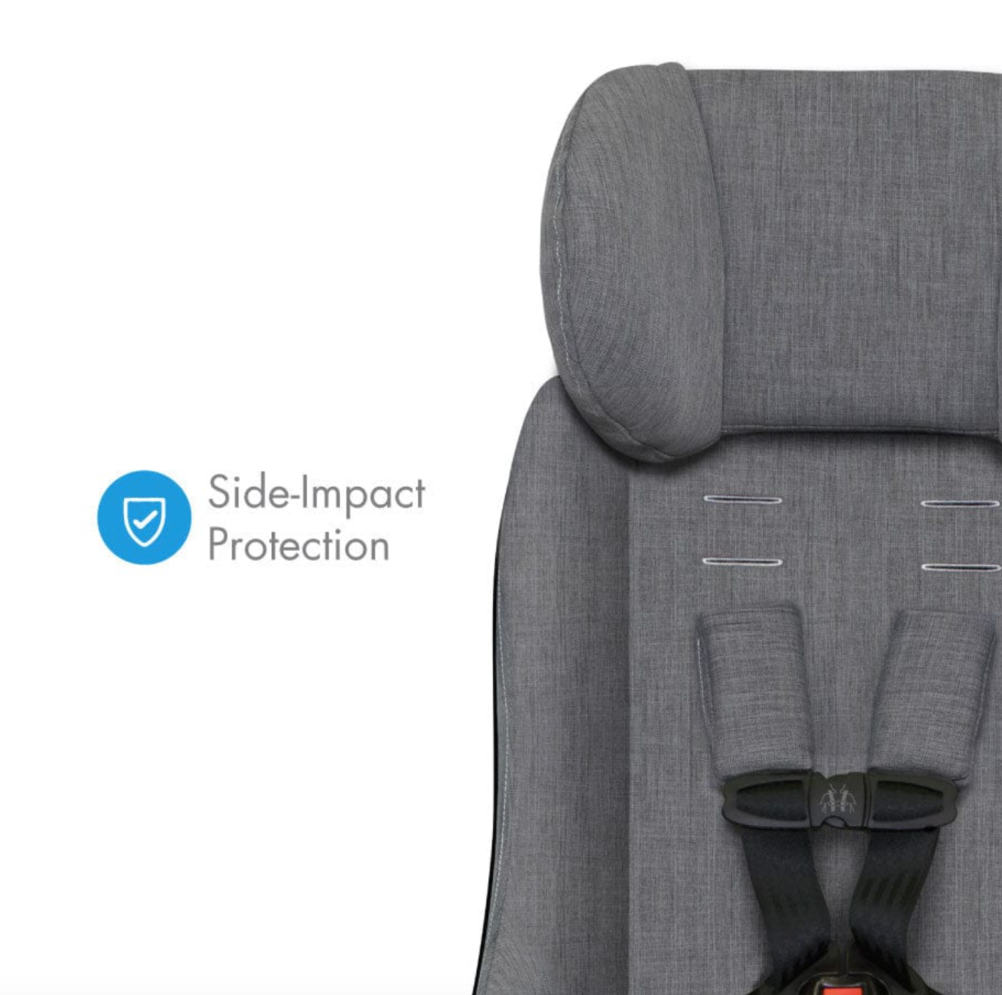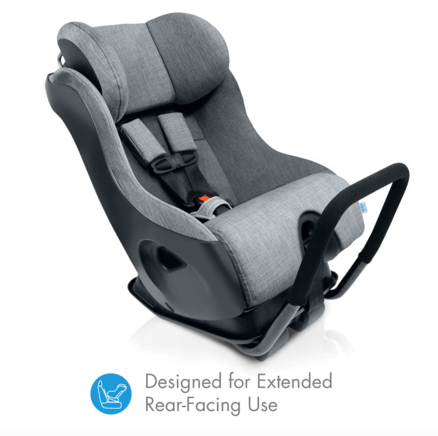 The Clek Fllo is one of the safest slim convertible car seats available, supporting extended rear-facing use allowing for most kids to remain rear-facing until their fourth birthday.