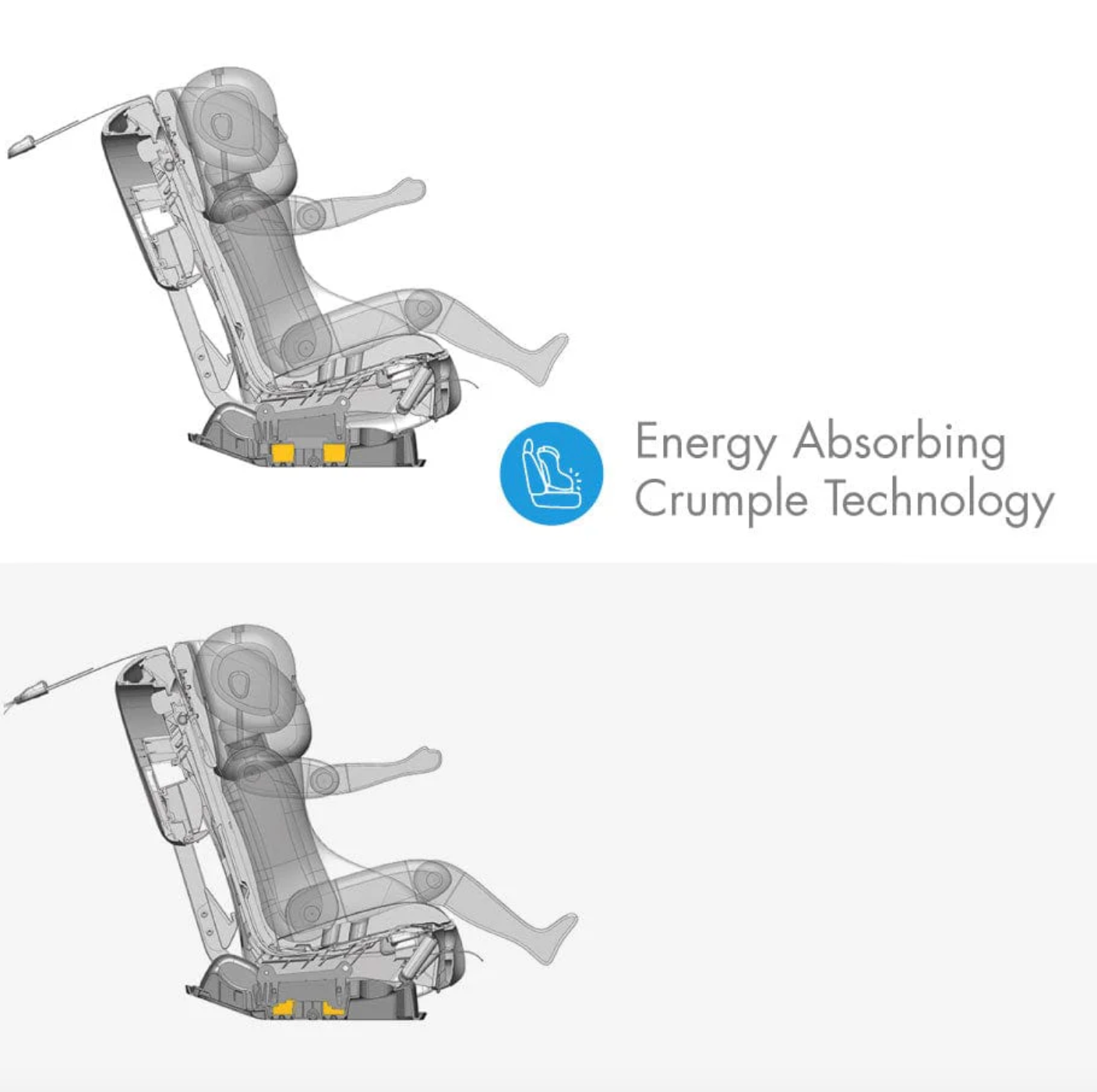 - EACT (Energy Absorbing Crumple Technology) Safety System actively reduces the forces transferred to a child in a frontal collision using automotive-inspired crumple technology.