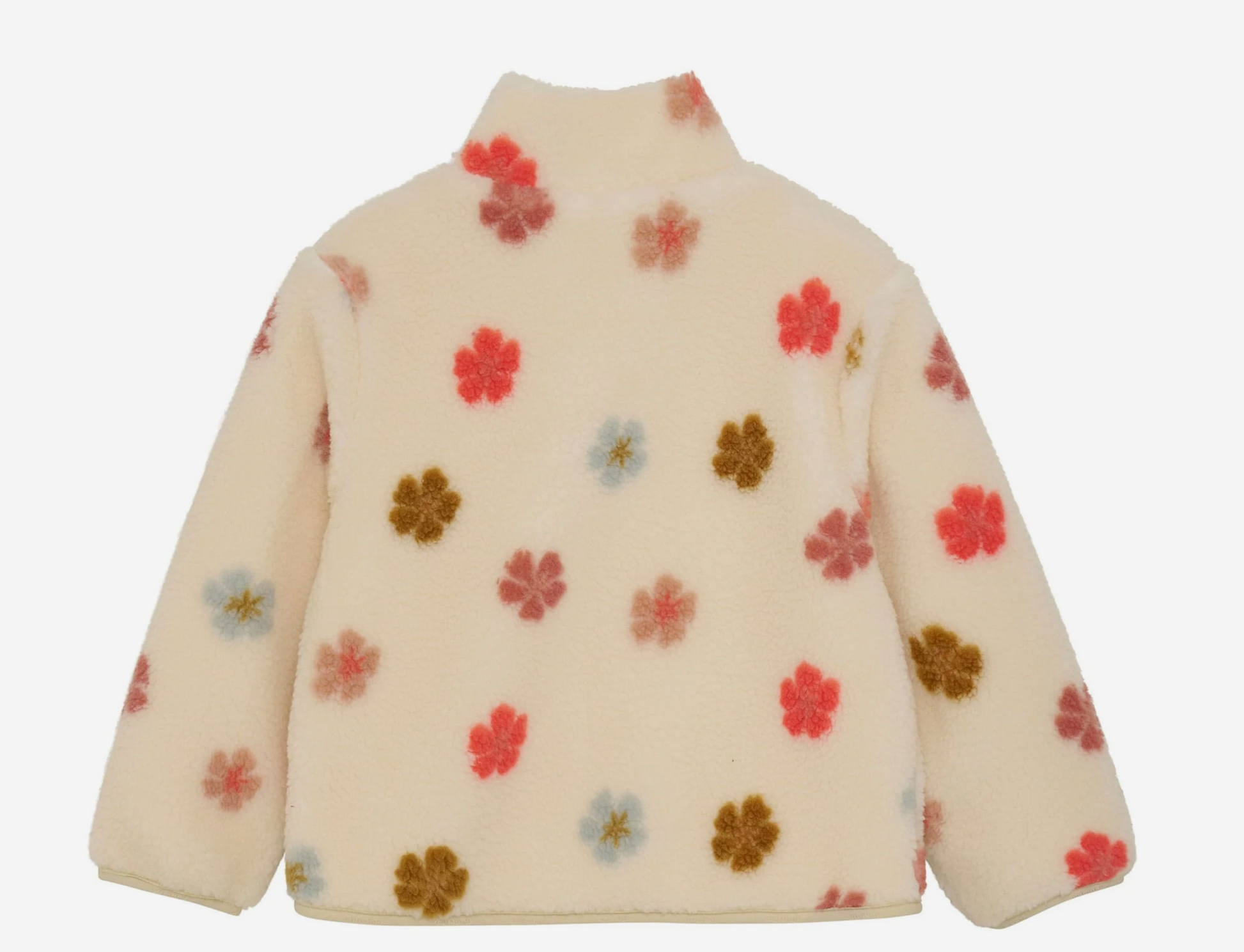 Cozy up in this snuggly teddy fleece jacket lined for extra warmth. It flaunts a charming floral pattern, a handy high collar, and an easy front zipper to keep the chill out with style.