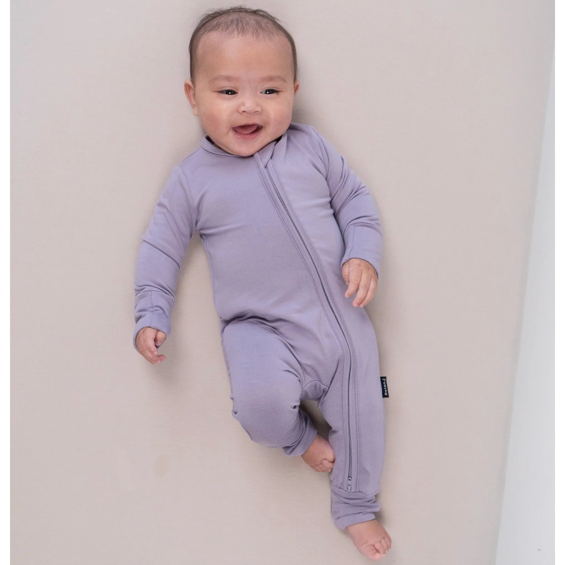 Footed sleeper made in buttery soft bamboo rayon for the perfect night sleep. Bamboo is very breathable and moisture wicking which makes it the ideal fabric for infant sleepwear. 2-way zipper closure makes for easy diaper changes while fold over cuffs* and chin guard keep baby safe from scratches and pinches. Sizes 6-12M & 12-18M have silicone grippers on soles to prevent slipping.