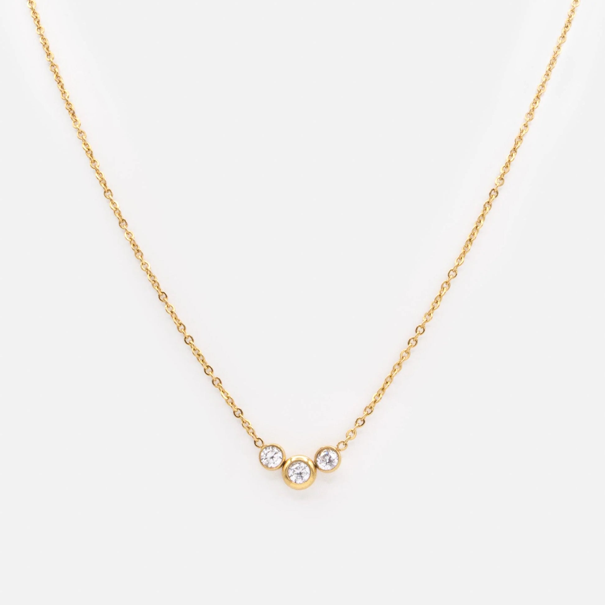 Golden necklace in stainless steel with cubic zirconia trio