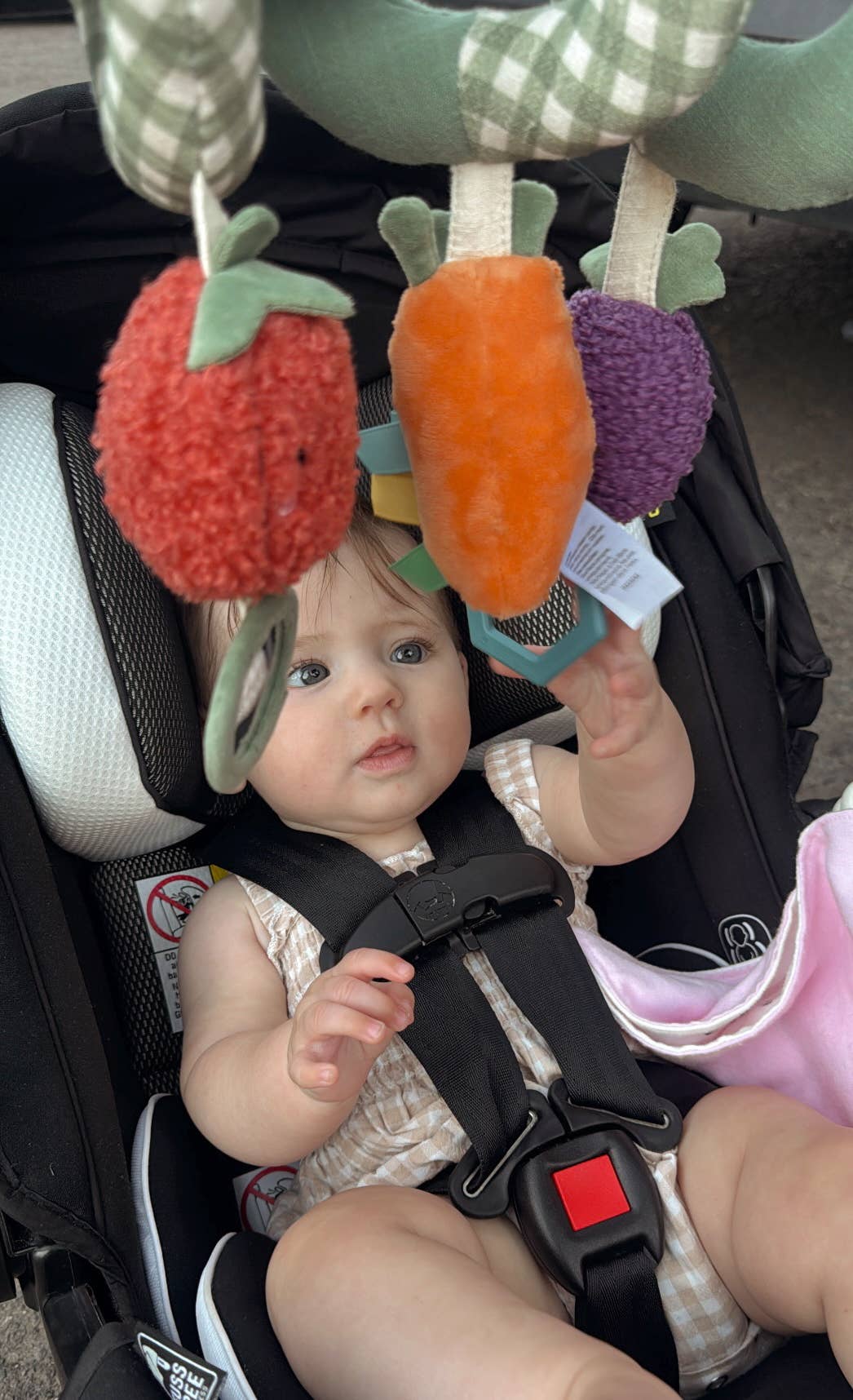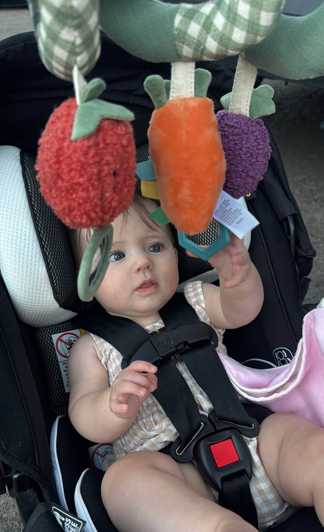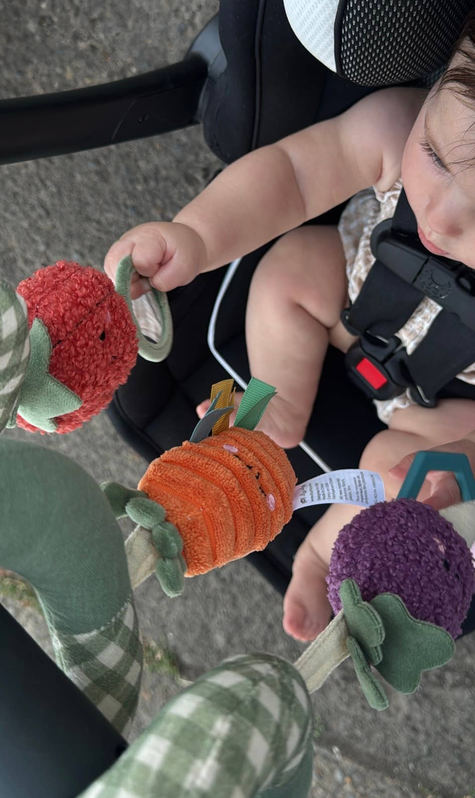 Watch as your babe reaches for the dangling rainbow rings, smiles at their reflection in the hanging mirror, and grasps for the ribbons keeping their little hands busy. Our natural cotton fabrics are gentle & soft to baby’s touch. For the many travels ahead, easily attach Itzy Bitzy Spiral™ to car seats and stroller for fun on-the-go!