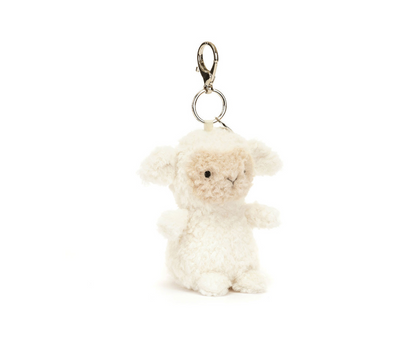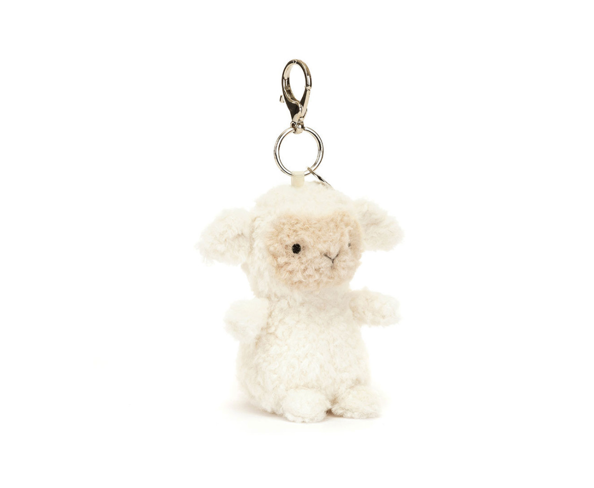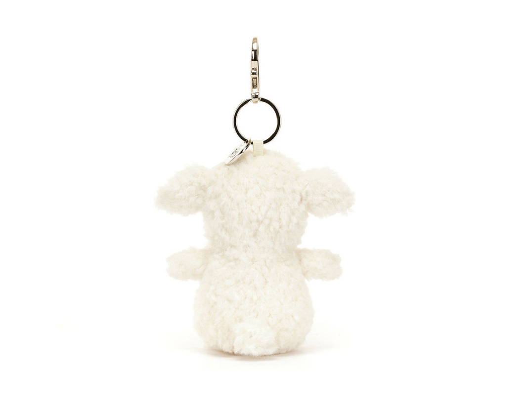 Charmingly petite and plump, the Little Lamb Bag Charm brings endless delight. With creamy fluff, a biscuit face, and tulip ears, this lamb easily attaches with a sleek silver clasp and a glimmering Jellycat disc. Size: 6.7in x 2.4in x 3.1in Sitting Height:4.3 Primary Materials: Polyester Filling: Polyester Fibers Embroidered Eye.