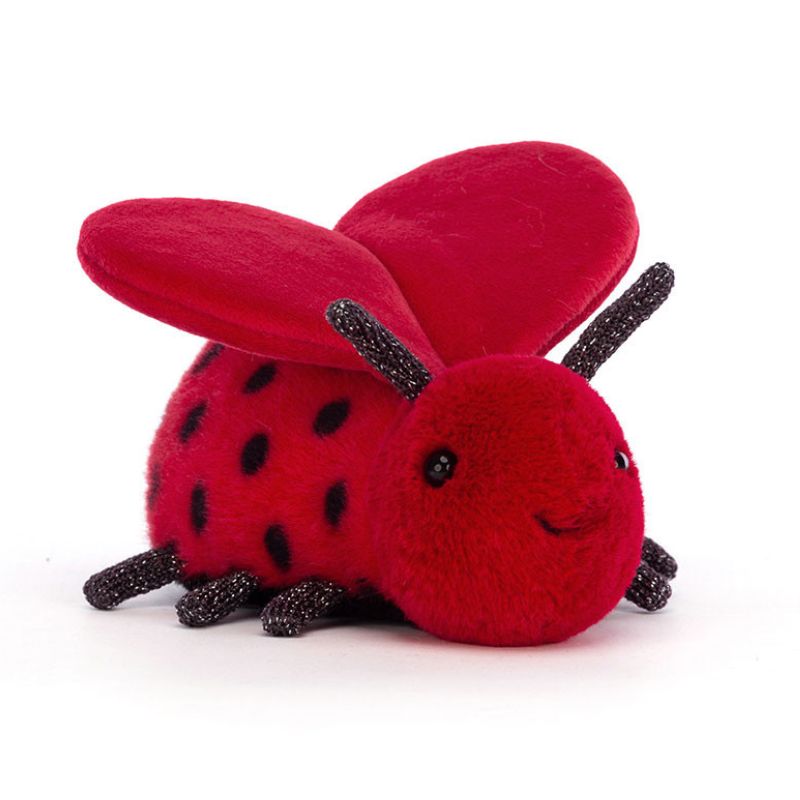 Meet Loulou Love Bug, the charming insect with heart-shaped wings and a smiley face. Sporting vibrant scarlet fur with playful polka-dots, a cuddly tummy, and shiny legs and feelers, this quirky bug is the ideal present for your hilarious honey. Who wouldn't want to snuggle with this bug?