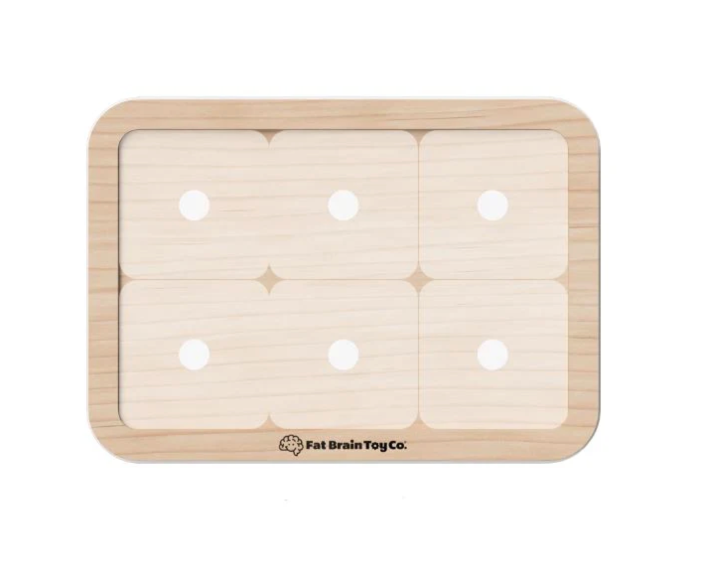Grab the board (sold separately) and then choose from the unique tiles (available in packs of 3). There's a set of gears that spin together, textured buttons that squeak, colorful balls that roll through a maze, a dial that clicks from one to ten... They all magnetically snap onto the board any way you want. Or, you can just throw a few in the diaper bag, or even stick them to the fridge! The classic activity board becomes more versatile and more open-ended with PlayTab.