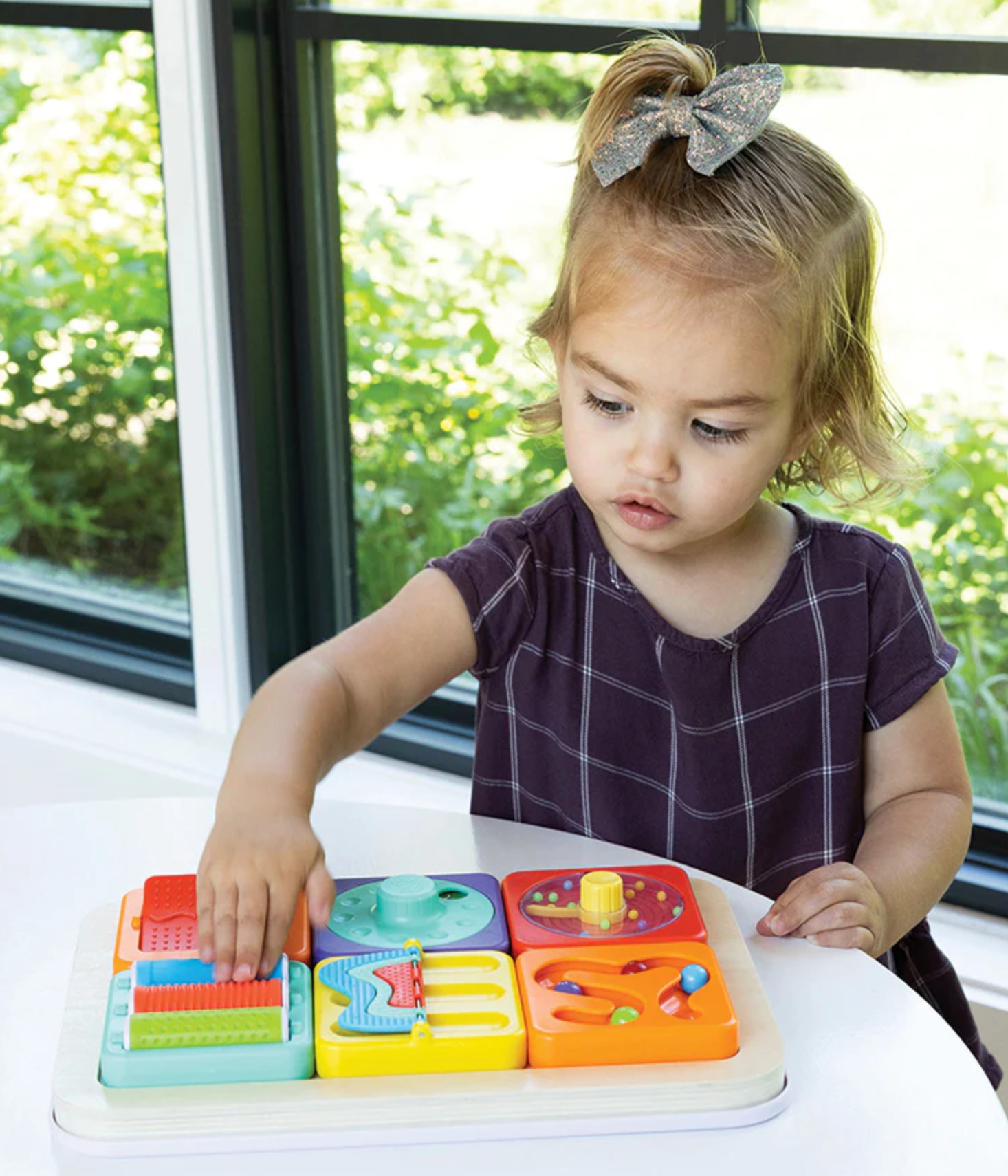 PlayTab is a modular sensory set that lets you build a unique experience packed with fine motor challenges, visual fascination, cause-and-effect discoveries, and more. There are various sets that can be enjoyed on their own, but for maximum fun, get the PlayTab board that allows one to snap in up to six modules for a full sensory experience.