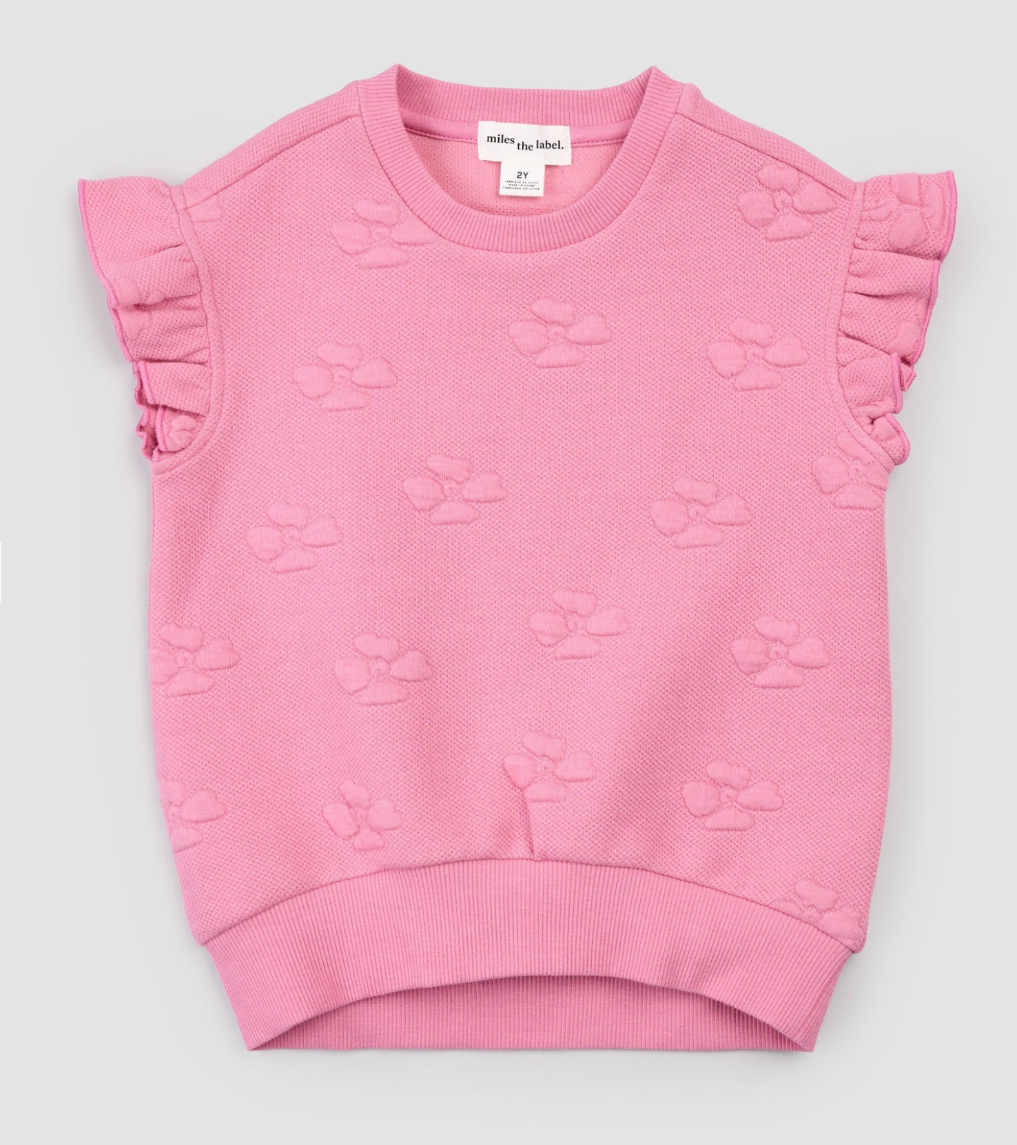 This charming pink knit tee brings a touch of whimsy with its delicate ruffled sleeves and sweet floral embellishment. Perfect for adding a pop of color and personality to your everyday wardrobe, it's the kind of piece that makes you smile when you put it on.