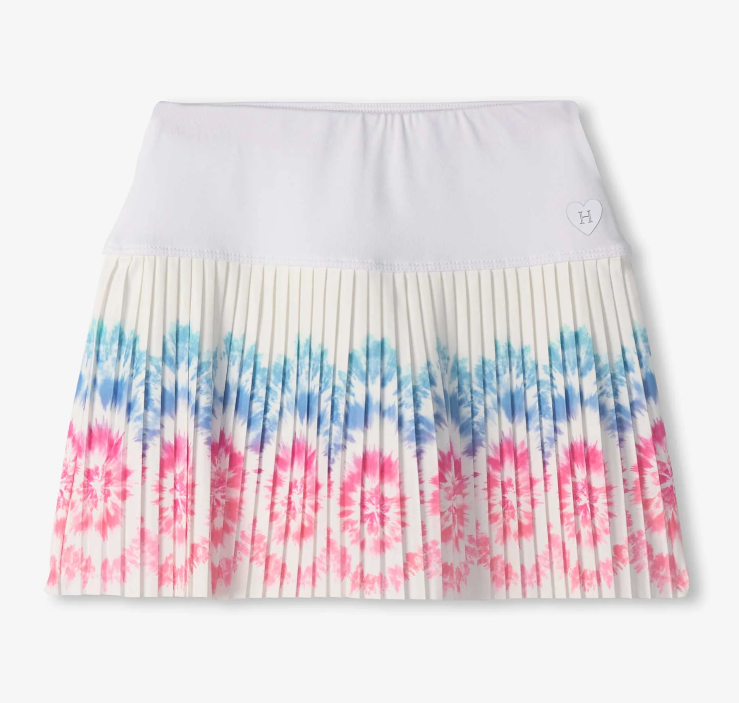 This action-ready Girls Sunburst Sporty Skort is perfect for all your active days! The skort gives you the best of both worlds - the comfort of shorts and the style of a skirt. Crafted from a stretchy polyester-spandex blend, it lets you move freely while still looking cute. The eye-catching sunburst pattern adds a playful and energetic touch, making it ideal for sports, school, or just hanging out. Plus, with its lightweight and breathable design, it's a must-have for any active girl! It features a pleated skirt with attached shorts underneath, along with a wide two piece waistband and elastic at the top edge. The shorts are attached to the inner waistband/elastic, while the lower skirt is pleated from the waistband seam down. And don't worry about messy playtime - this skort is machine washable for easy cleanup!