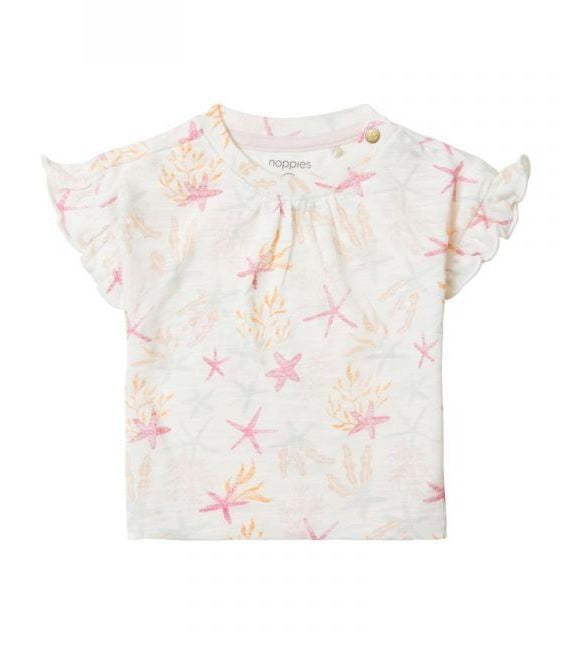 The Chula Shirt from the Noppies Baby collection features a playful starfish print and ruffled sleeves. It comes in a slightly looser fit. Lovely and lightweight on warmer days! The two shoulder press studs will make changing your baby's clothes and nappies much easier. Style the shirt with one of our matching items to complete this summery look.
