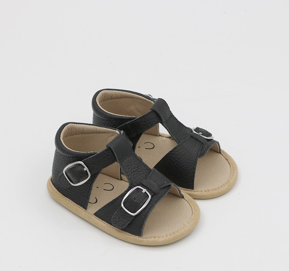 The River shoe is a strappy summer classic that transitions beautifully to a spring or fall shoe when matched with a bright pair of socks. It features a real adjustable buckle to keep them snug and in place.
